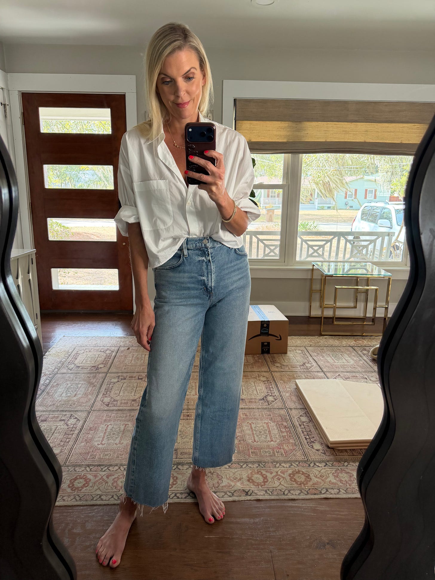 Agolde Ren High Rise Wide Leg Jeans| I have been trying to streamline my denim. I have so many pairs that I just don’t love. I recently ordered this style and love them. great fit, color and I love the frayed ends. I did a 27 my true size.